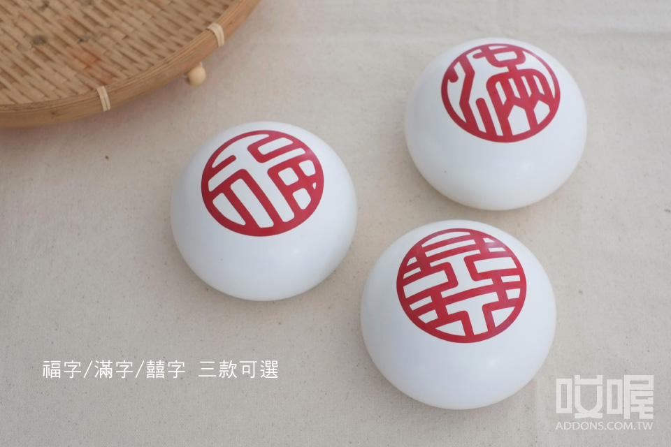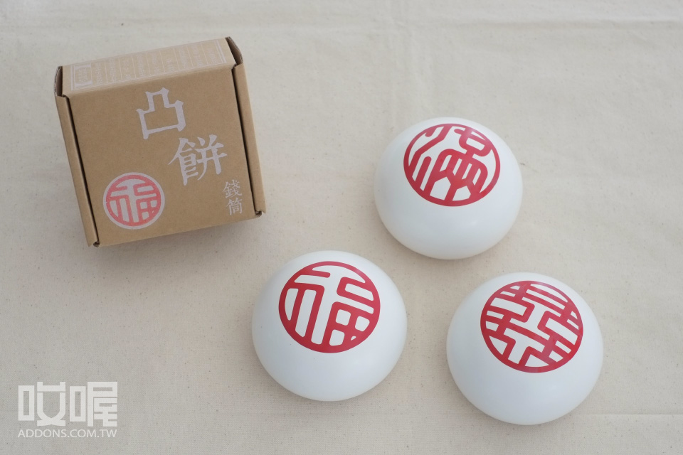 可愛逗趣的凸餅存錢筒,字款有滿、囍、福,共三款,