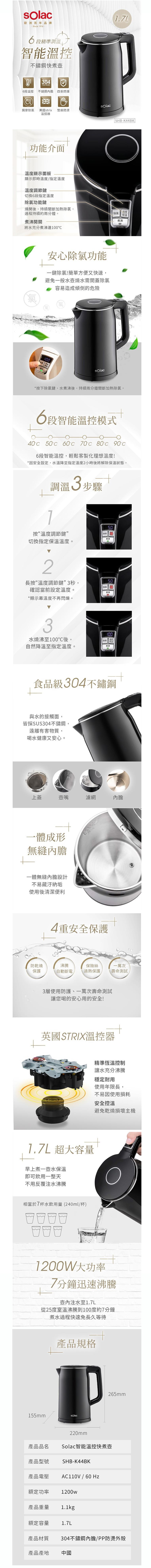sOlac 智能溫控快煮壺 / 熱水壺 1.7L (SHB-K44BK)