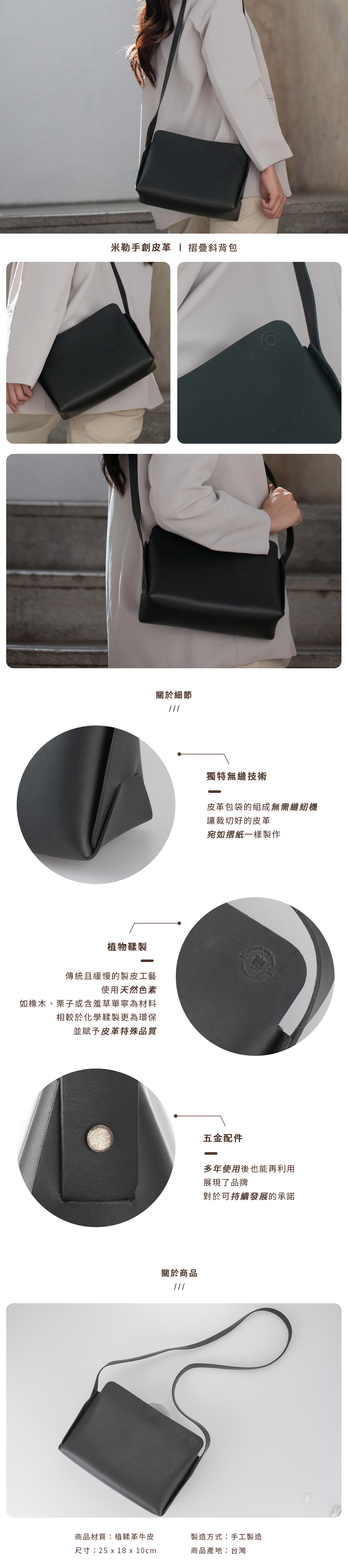 由張哲嘉鞄製作設計的「摺疊斜背包」,完美融合現代皮革工藝與環保理念,