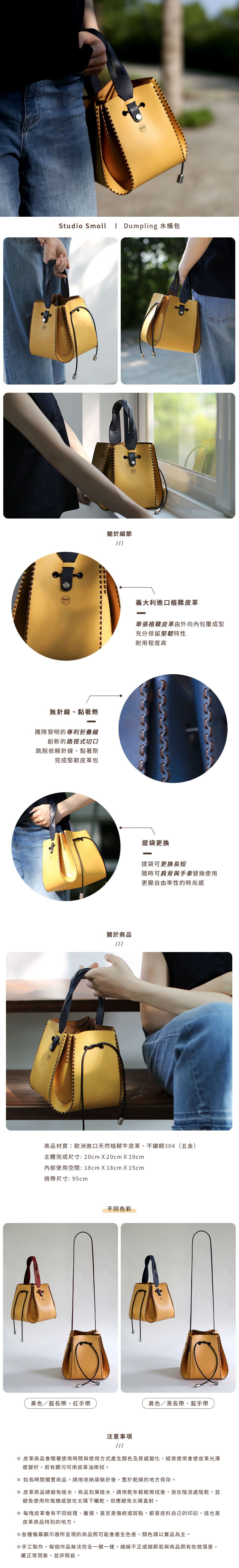 【台灣綠工藝】Studio Smoll Dumpling 植鞣皮革水桶包(黃色)