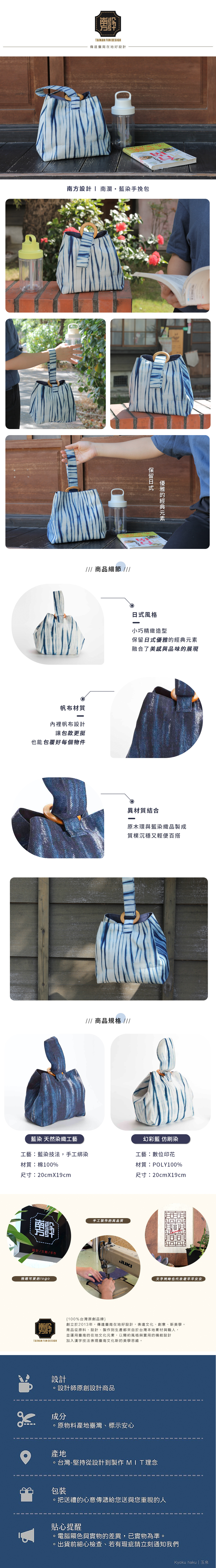 【台灣綠工藝】南方設計 藍染系列 南瀾・藍染手挽包/日式手挽包