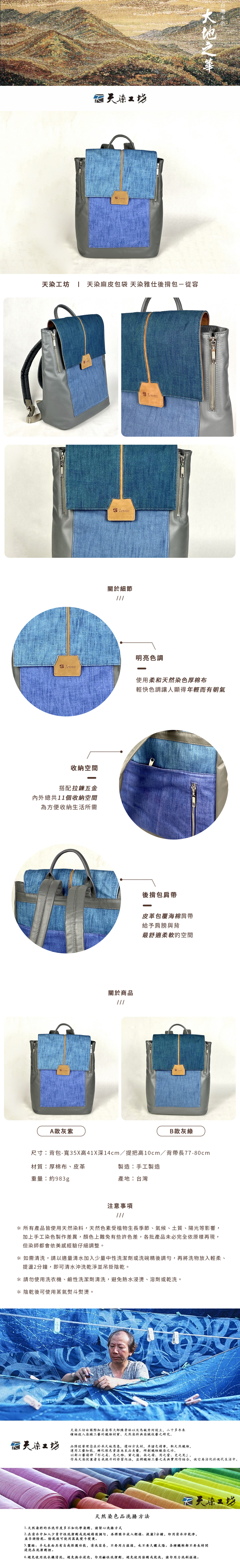 【台灣綠工藝】天染工坊 天染麻皮包袋 天染雅仕後揹包-從容