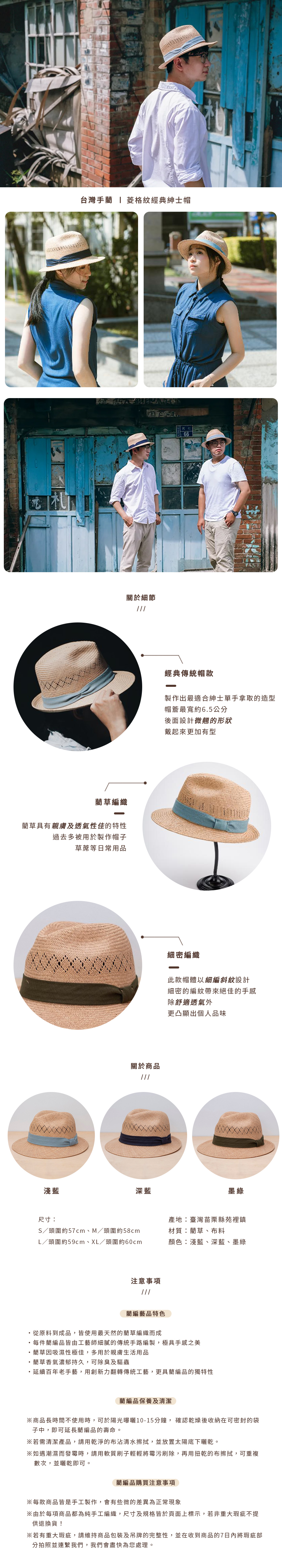 【台灣綠工藝】台灣手藺 菱格經典紳士帽 爵士帽