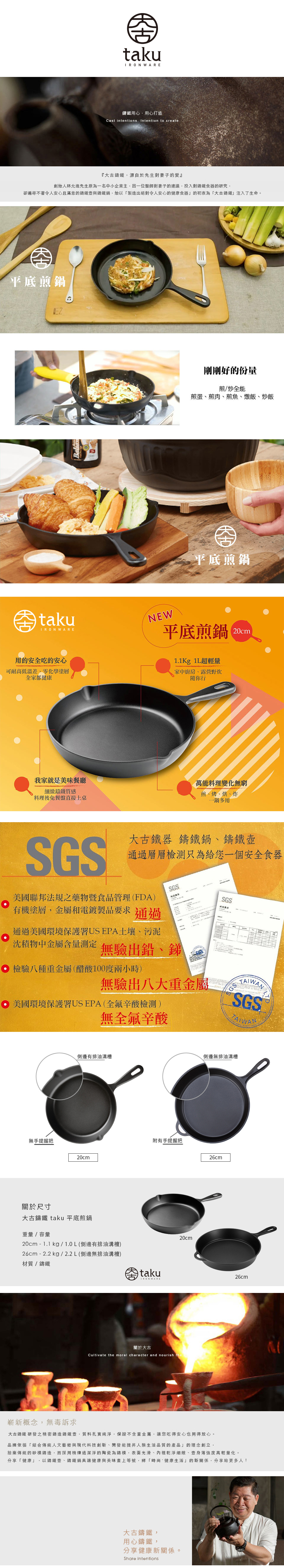 大古鑄鐵 taku 平底煎鍋(20cm/26cm)