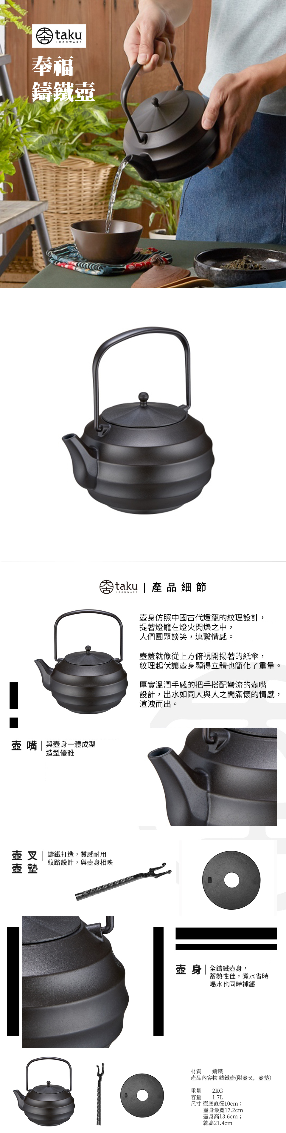 大古鑄鐵 taku 奉福 鑄鐵壺 1.7L