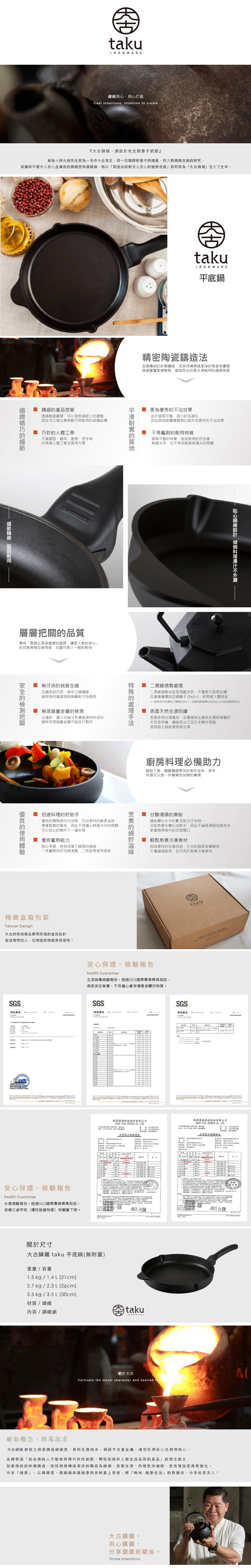 大古鑄鐵 taku 平底鍋 - 鑄鐵鍋入門款 (21cm/26cm)