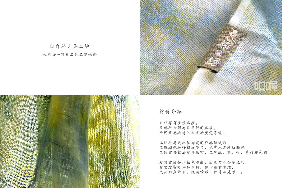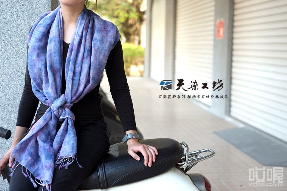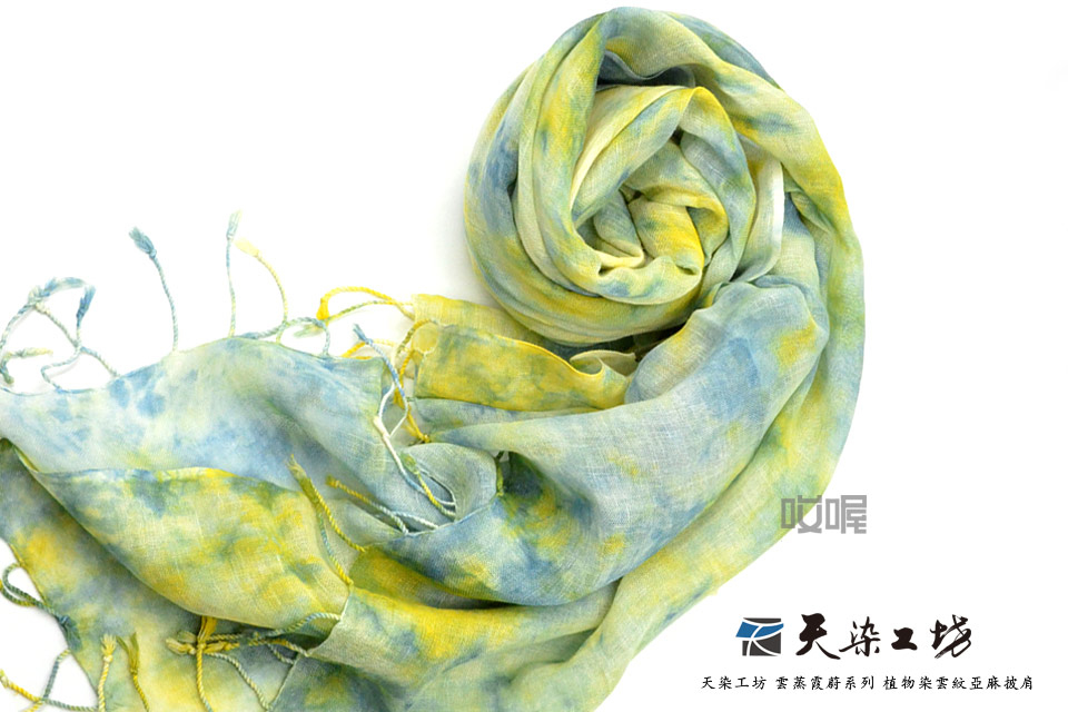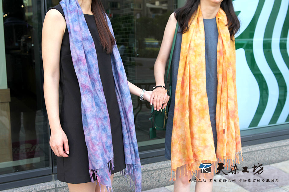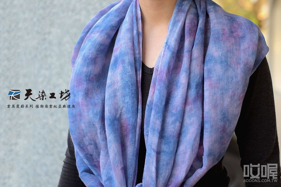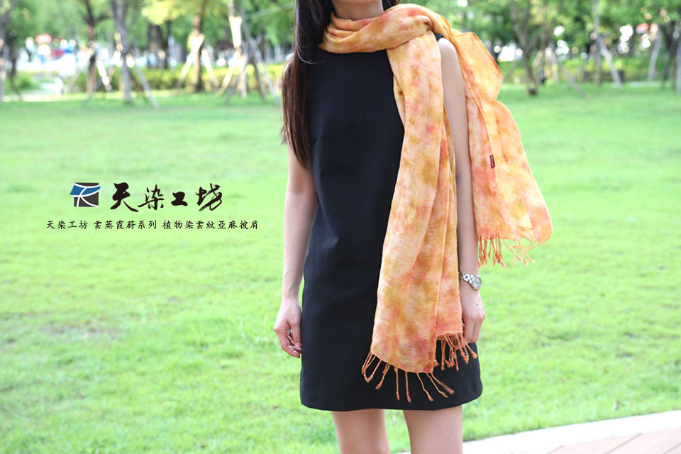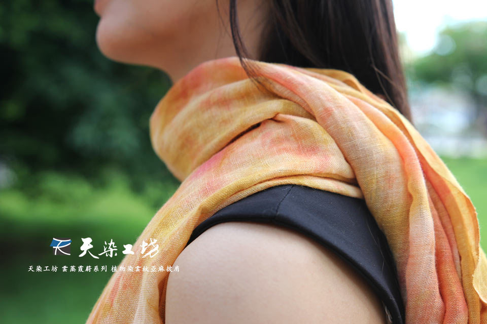 天染工坊 雲蒸霞蔚系列 植物染雲紋亞麻披肩