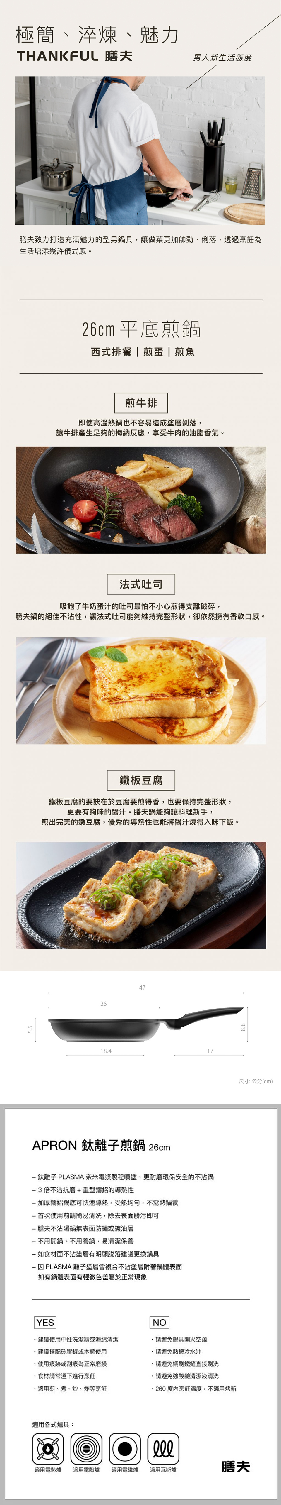 膳夫廚具 APRON 鈦離子不沾平底鍋 26cm