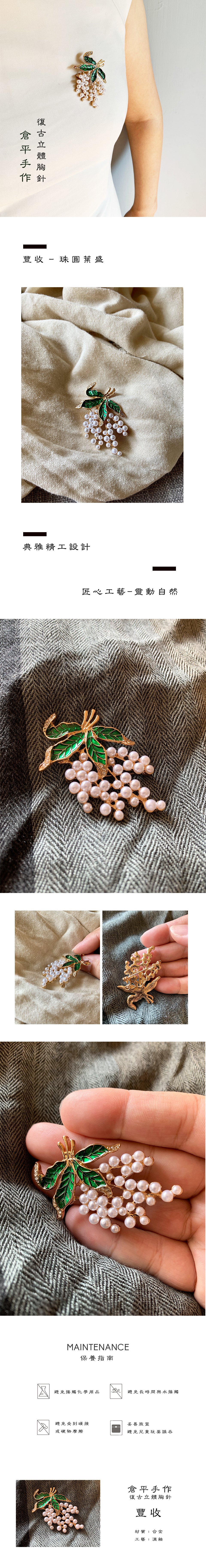 倉平手作 典雅精工設計 復古立體胸花/胸針 (豐收 - 珠圓葉盛)