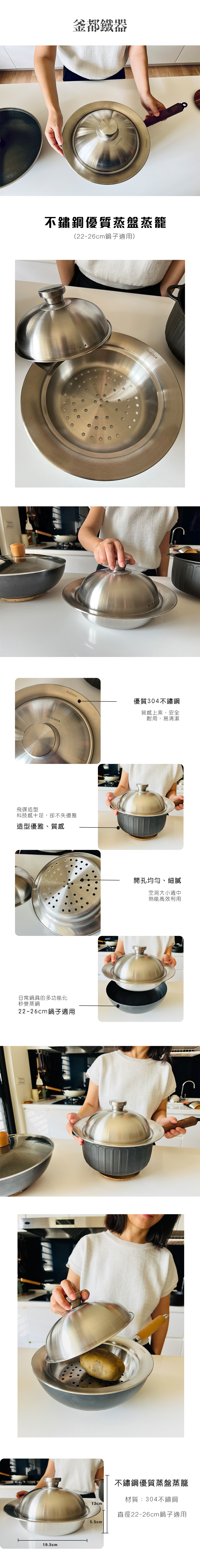 釜都鐵器 不鏽鋼優質蒸盤蒸籠 (22-26cm鍋子適用)