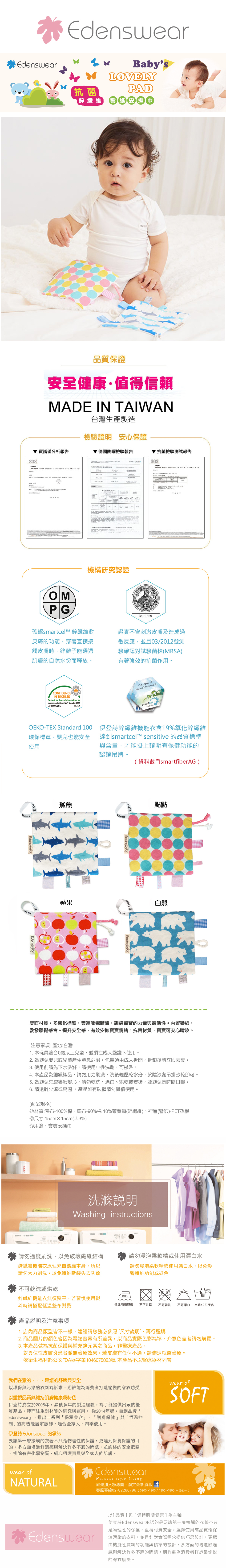 Edenswear伊登詩 鋅纖維系列 嬰兒響紙 口水巾 安撫巾 (一組二入 or 一組四入)