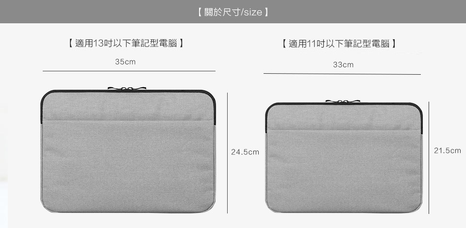 針對不同尺寸的電腦大小,有11吋與13吋兩種尺寸可選擇。