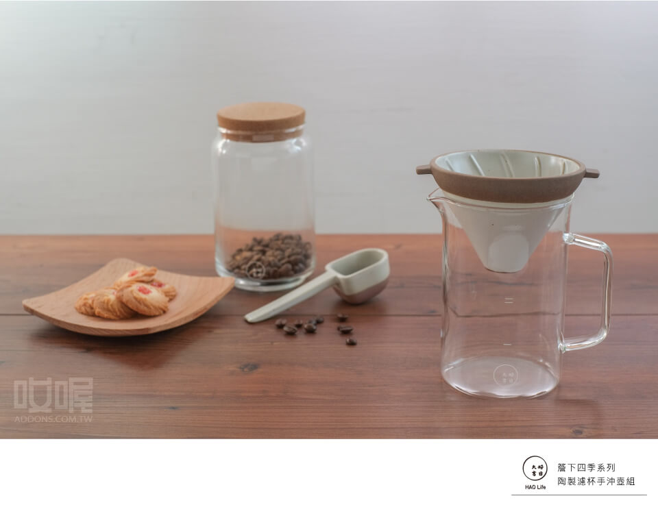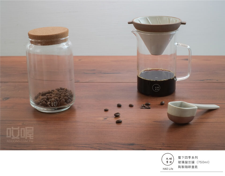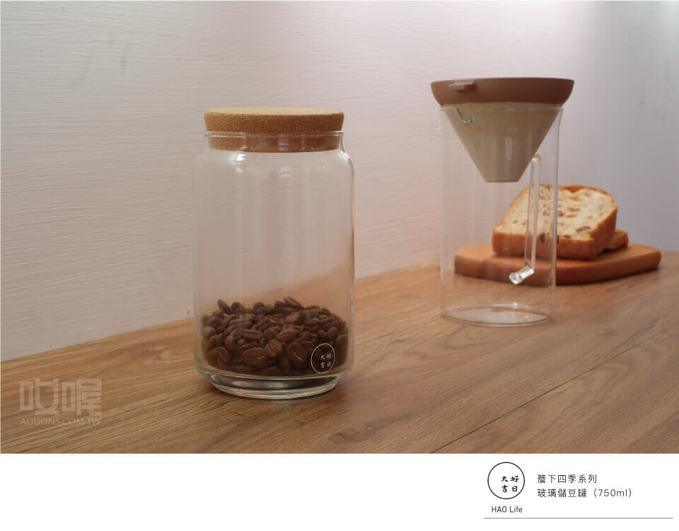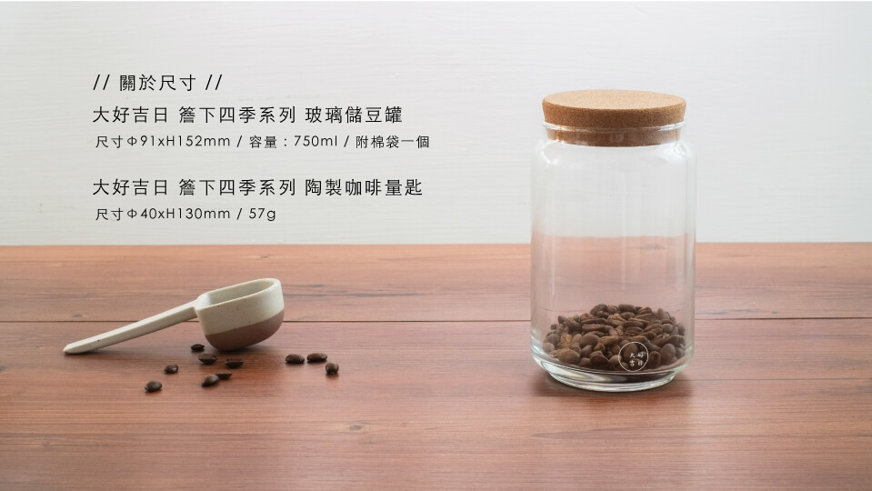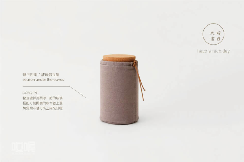 「簷下四季」為一系列的咖啡用具,軟木塞玻璃儲豆罐採用稍厚一點