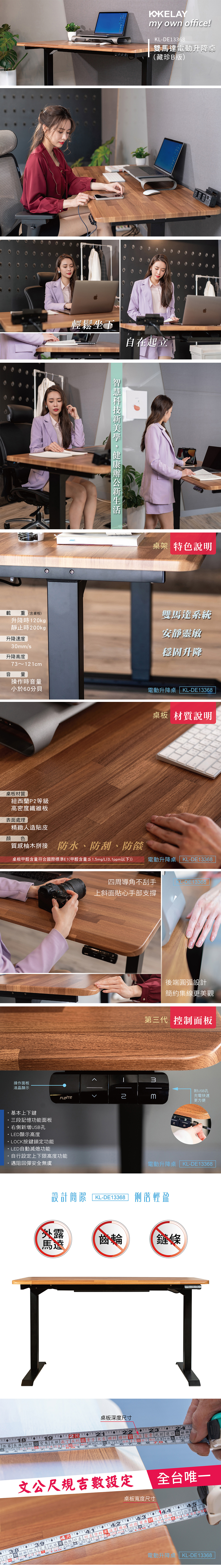 起立kelay 雙馬達電動升降桌 藏珍B版 KL-DE13368 贈FUNTE美型集線槽 (另提供付費安裝服務)