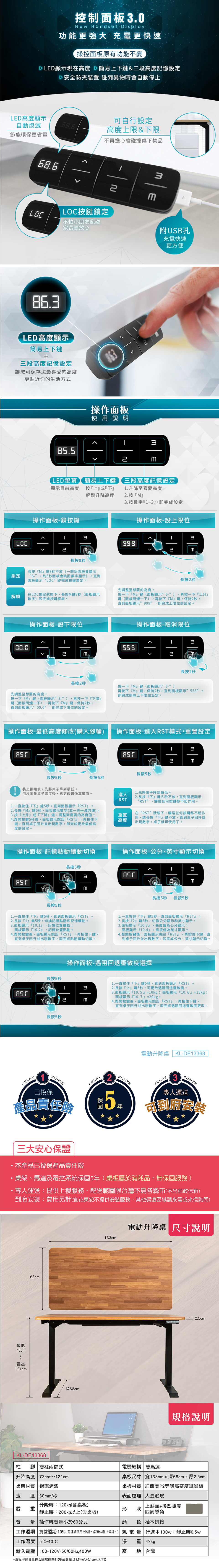 ・桌架/馬達及電控系統,保固五年 (不含人為損傷)