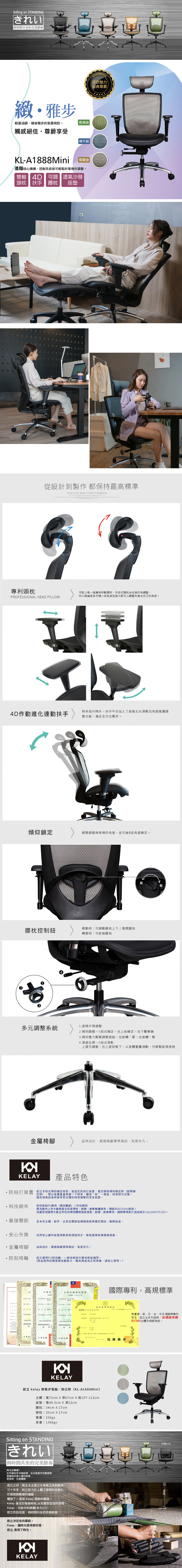 起立 kelay 時光美學系列 緻雅步電腦椅/辦公椅(KL-A1888Mini)