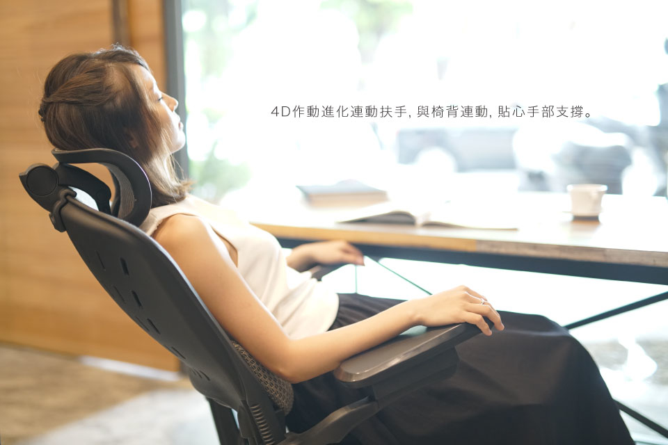 全新配備 4D 調整扶手功能,可前後/上下/左右/幅度調整,