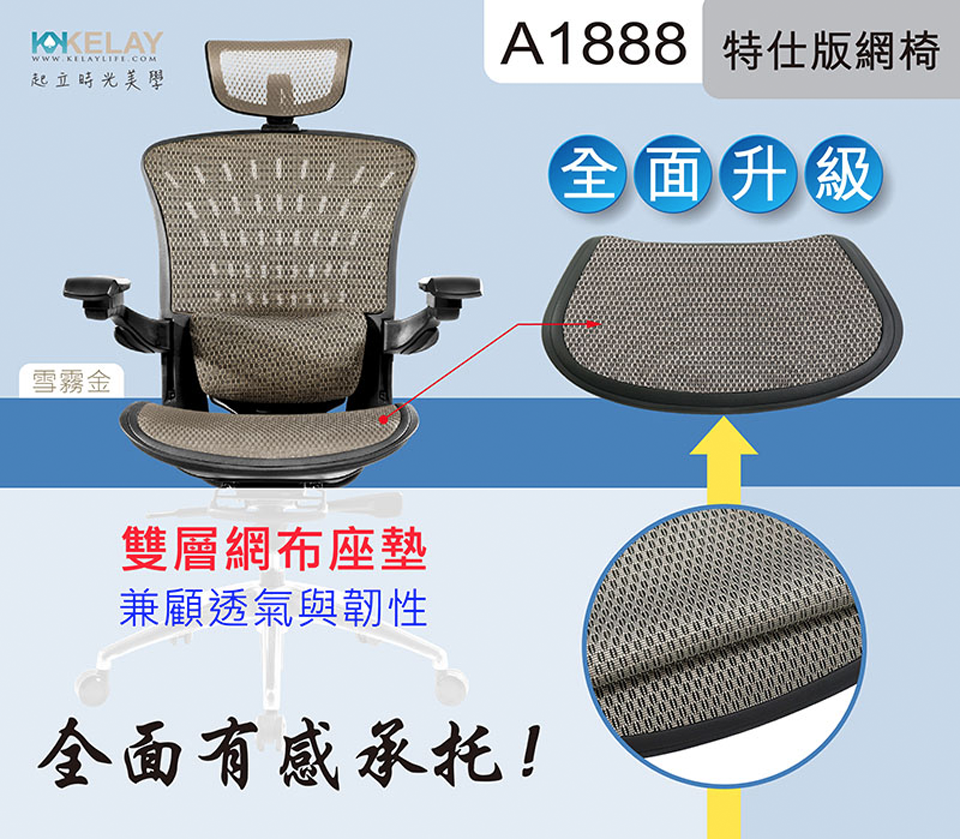 自4/18起,A1888網椅將全面升級為雙層網布座墊,