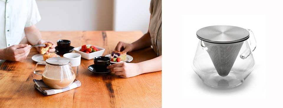 以耐熱玻璃與免濾紙不鏽鋼濾網為主的濾器設計,