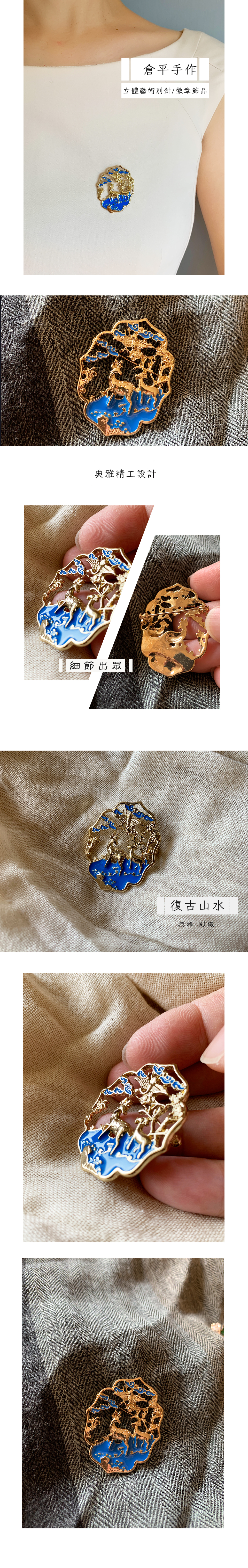 倉平手作 典雅精工設計 立體藝術別針/徽章飾品(山水畫-神彩奕奕)