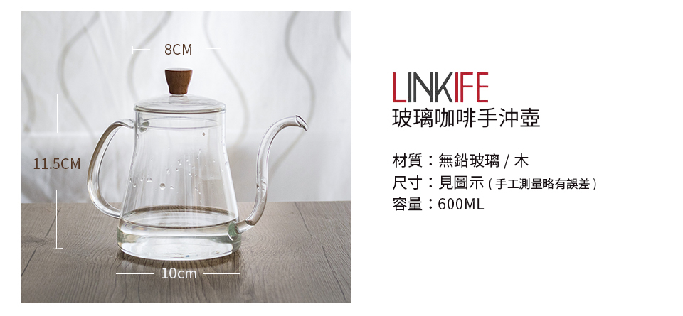 LINKIFE 玻璃手沖壺,跳脫常見金屬手沖壺的設計,