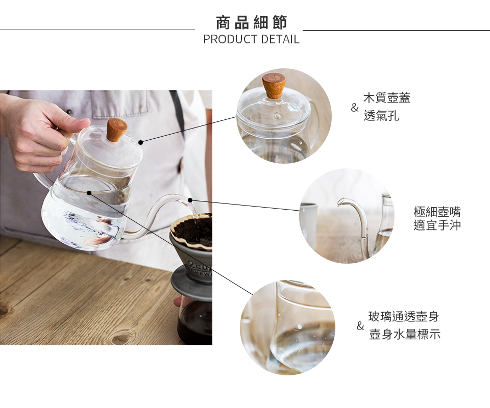 採用無鉛耐熱玻璃,重量比一般不鏽鋼手沖壺少了1/3,